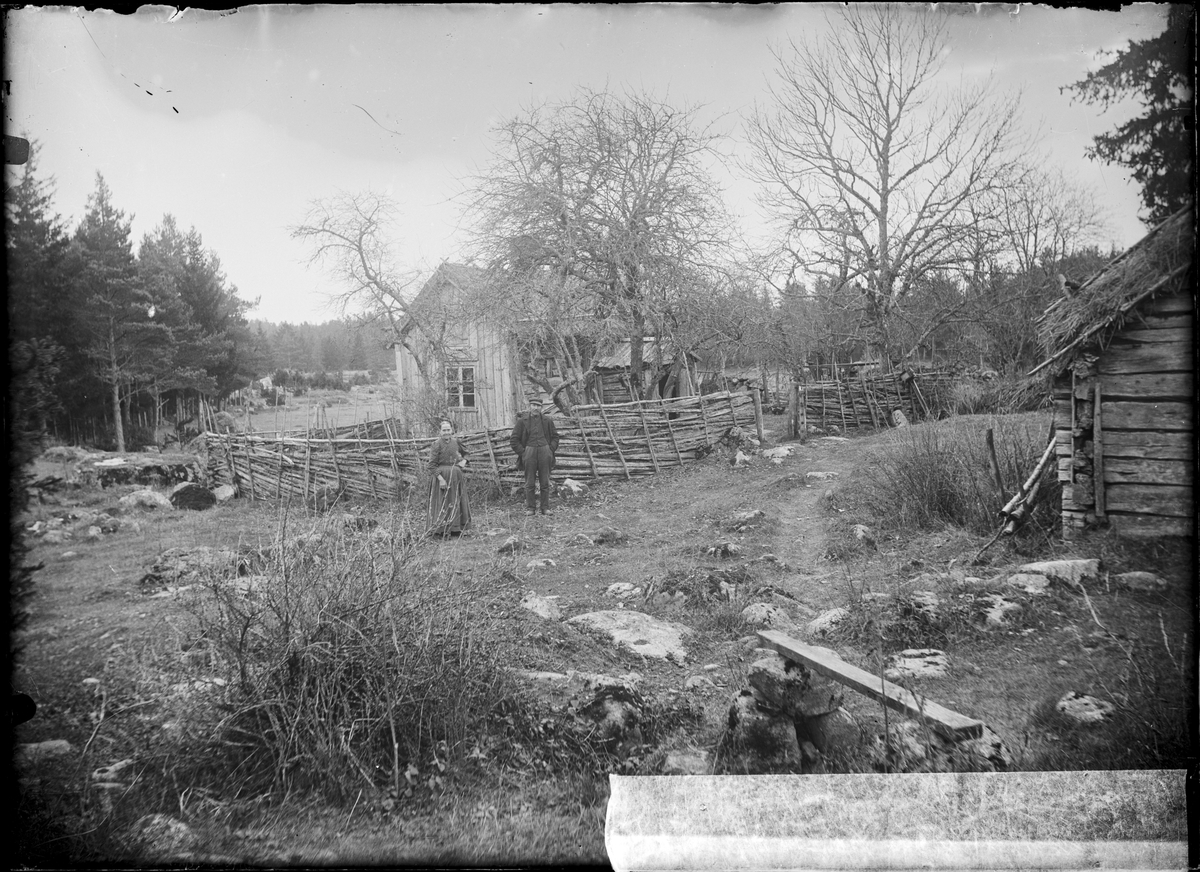 Äldre kvinna och man i torpmiljö, Funbo socken, Uppland