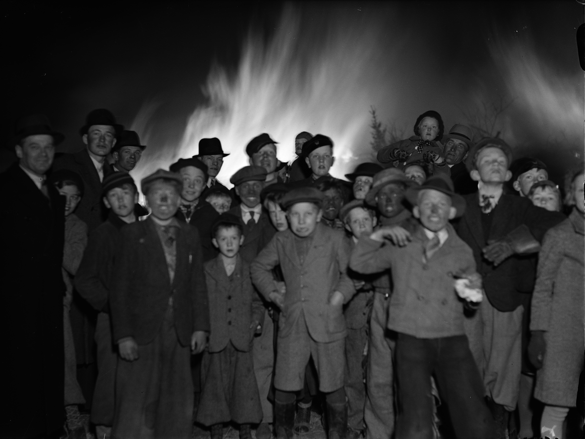 Valborgsmässofirande med "en samling fyrmästare vid bålet på Rackarberget", Luthagen