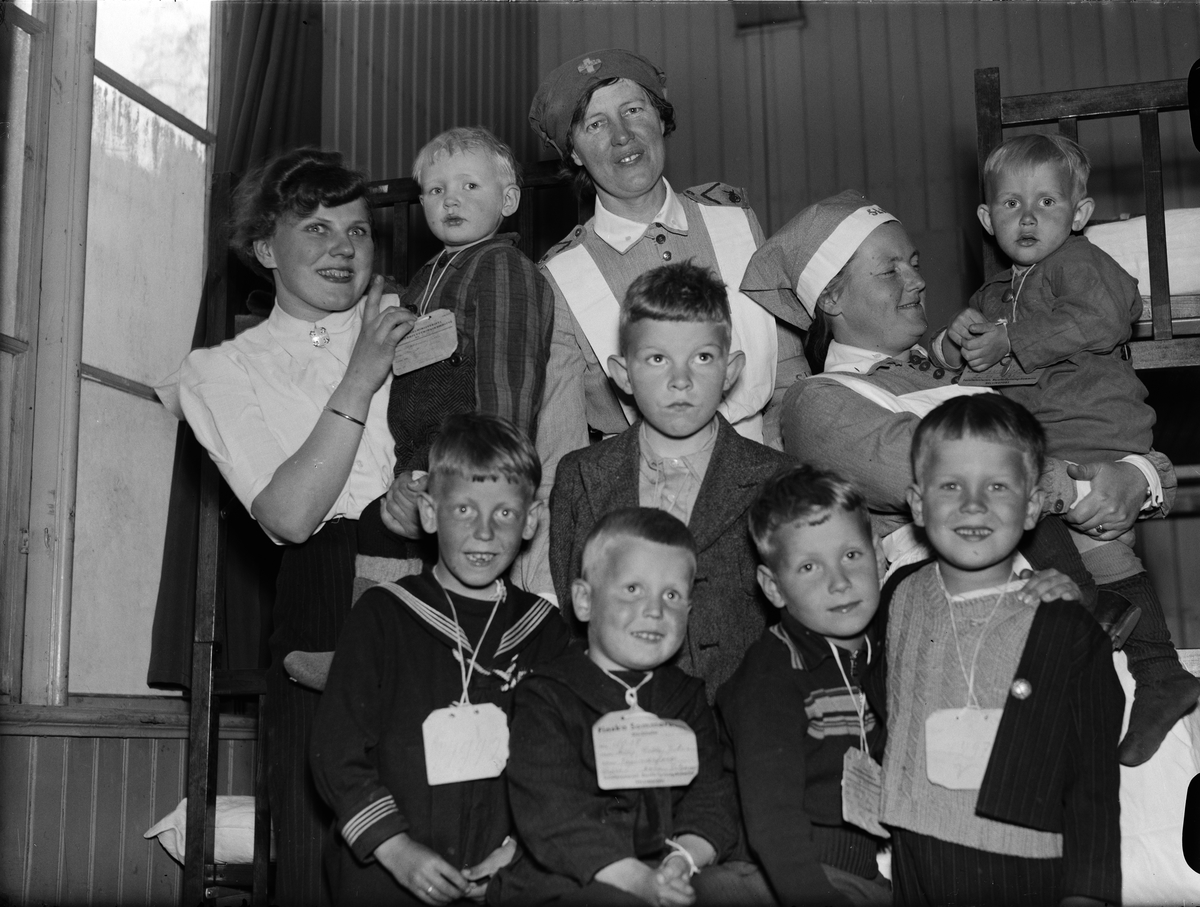 "Stor kontingent finska barn till Upsala i går" - finska flyktingbarn togs omhand på Lottakårens lokal, Uppsala maj 1942