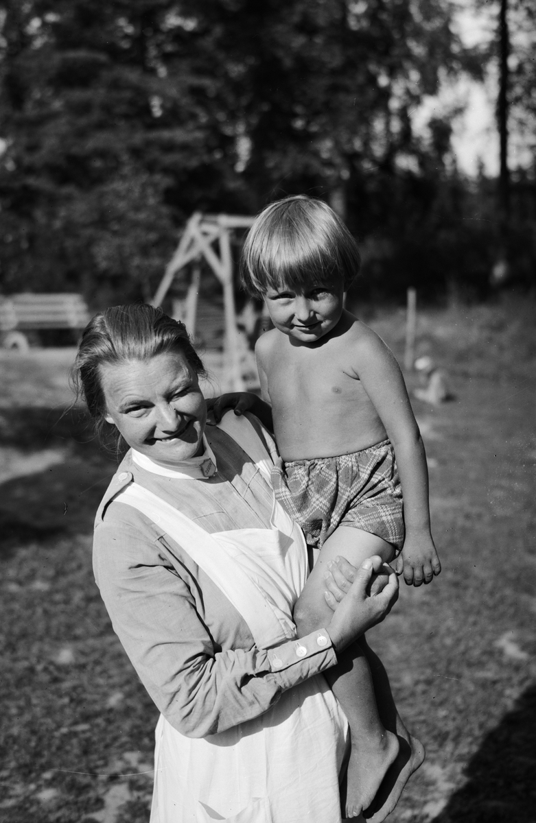 "Barnalyckans" föreståndare Berta Norlander med ett av barnen på Vreta barnkoloni