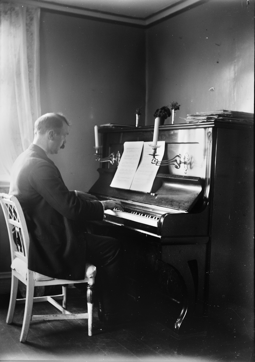 Tonsättaren Ruben Liljefors spelar piano sannolikt i hemmet, Sverige