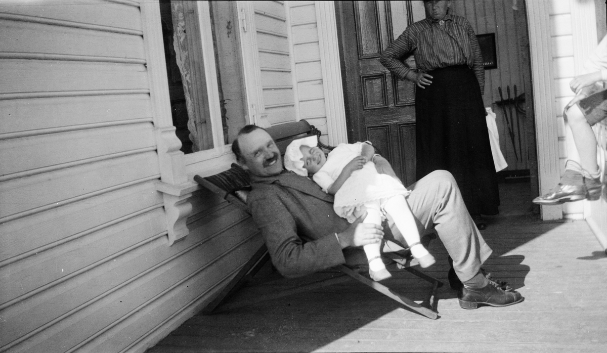 Ruben och Marit Liljefors, i bakgrunden Pauline Egelind Petersen, Christiane Liljefors mor, sannolikt vid huset "Grönvold", Christianes Liljefors föräldrahem, Stavanger, Norge