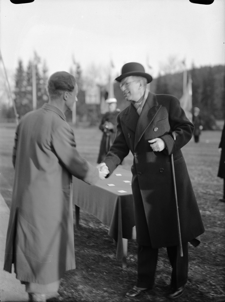 Kronprins Gustav Adolf delar ut priser i samband med återinvigningen av Studenternas Idrottsplats