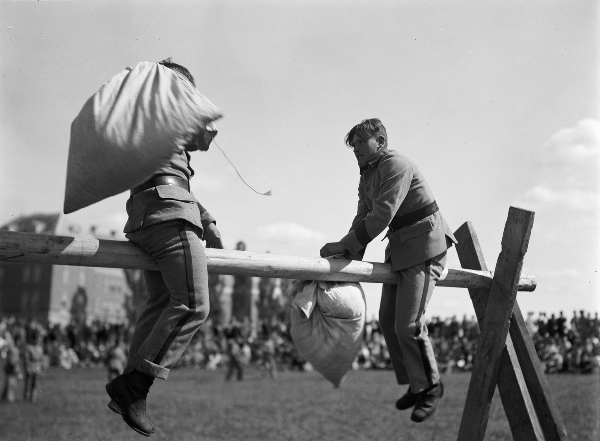 "Framför kasernerna slogs man med hösäckar" på Regementets dag, Upplands Regemente, I 8, Polacksbacken