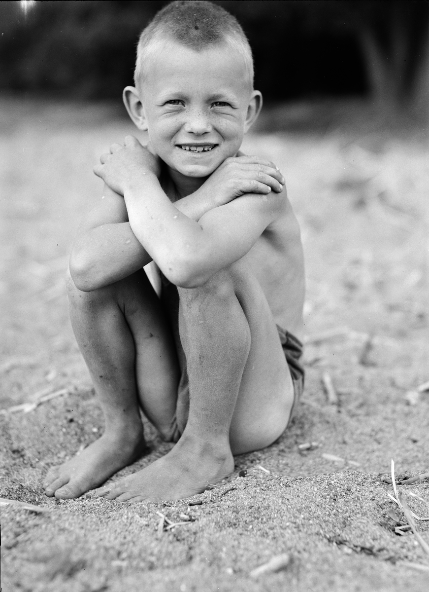 Pojke på Svenska Motorklubbens uppsalaavdelnings utflykt till Fredrikslunds gård