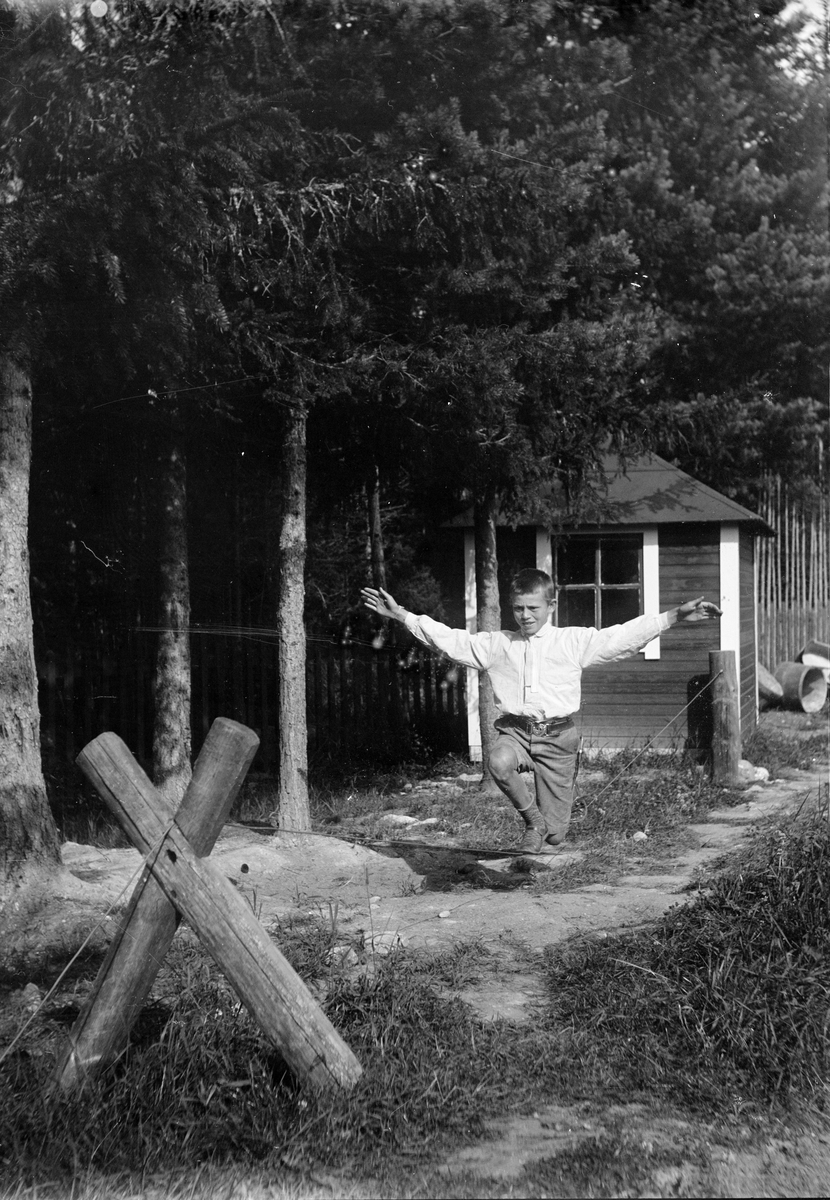 Sannolikt Alf Liljefors, en av Christiane och Ruben Liljefors söner, som tränar gå på lina, sannolikt i Dalarna