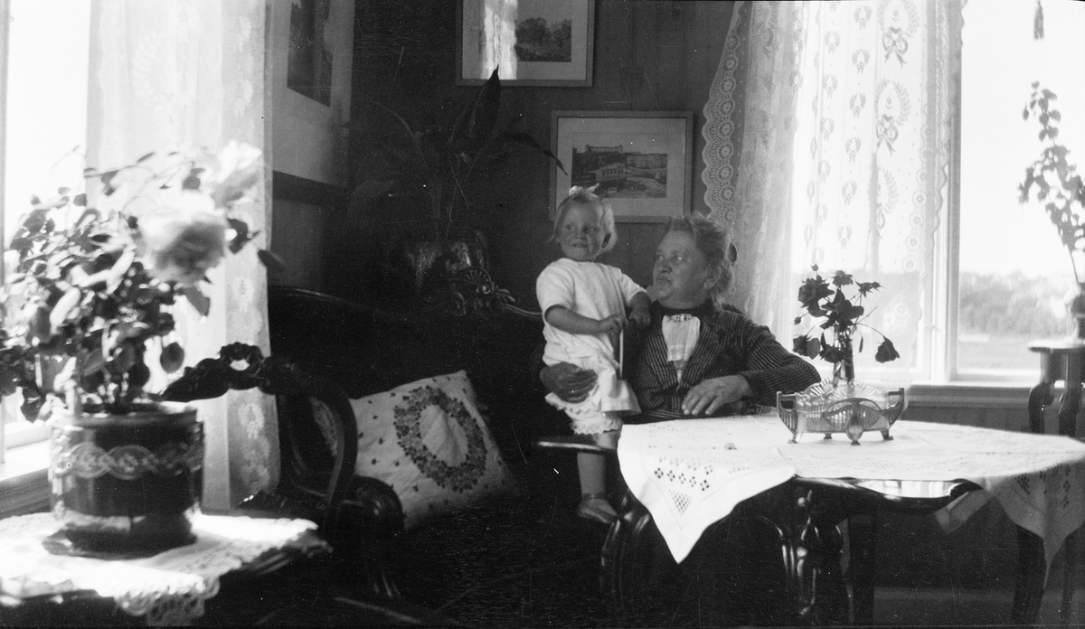 Marit Liljefors med sin mormor Pauline Egelind Petersen, sannolikt hemma hos mormor i "Grönvold", Stavanger, Norge
