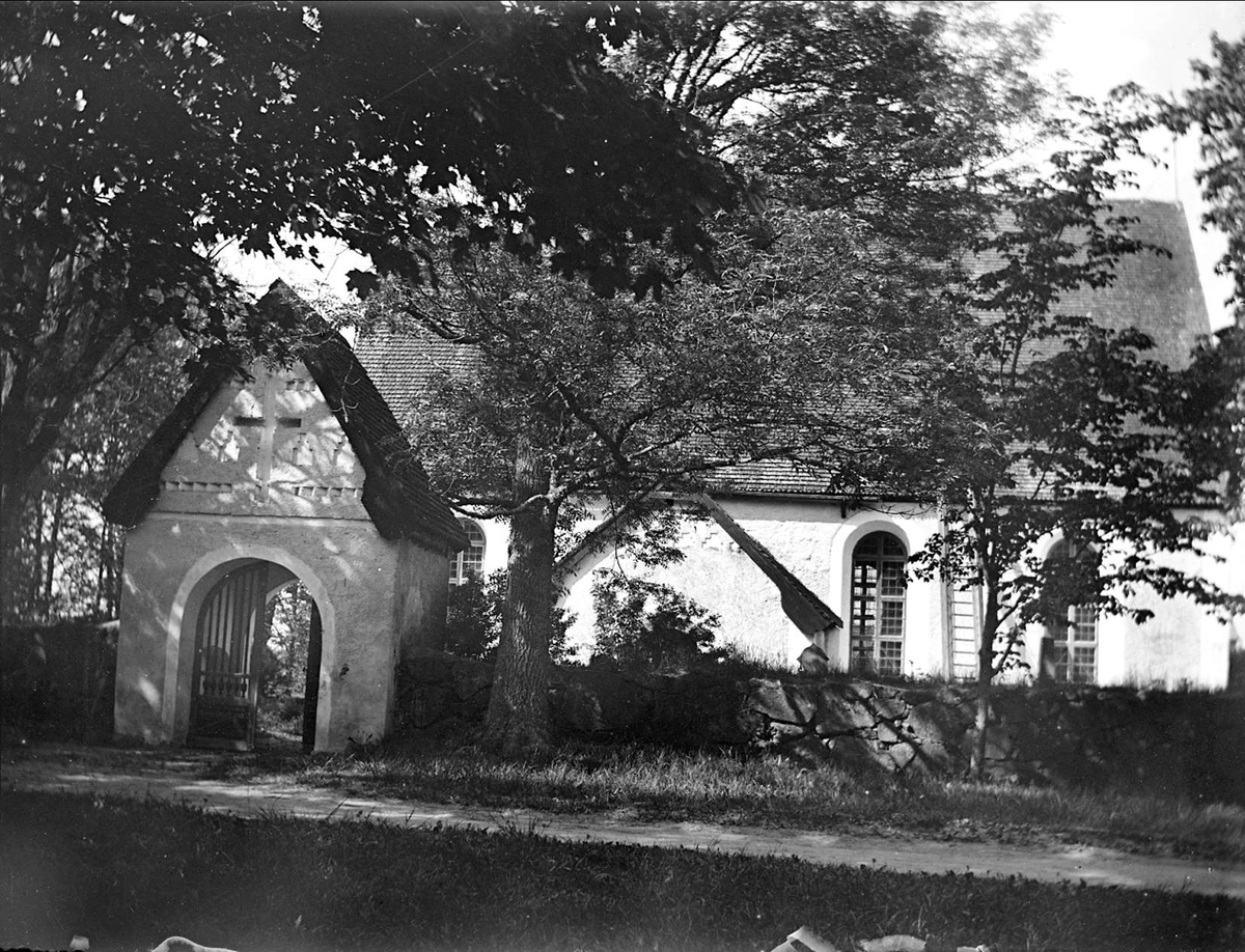 Stavby kyrka med stiglucka, Stavby socken, Uppland i juni 1917