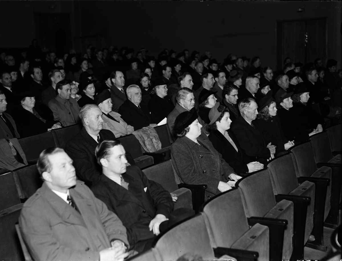 "Jubilerande H. S. B. i Upsala lovordas" - åhörare på 10-årssoarén, Röda kvarn, Uppsala april 1943