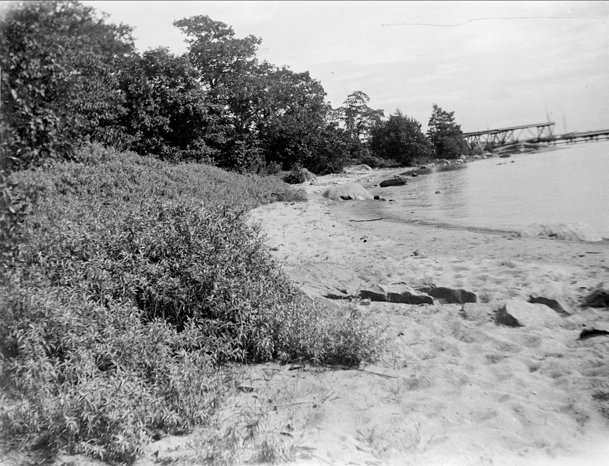 Strandparti vid Klockarbryggan, Gräsö socken, Uppland i juli 1923