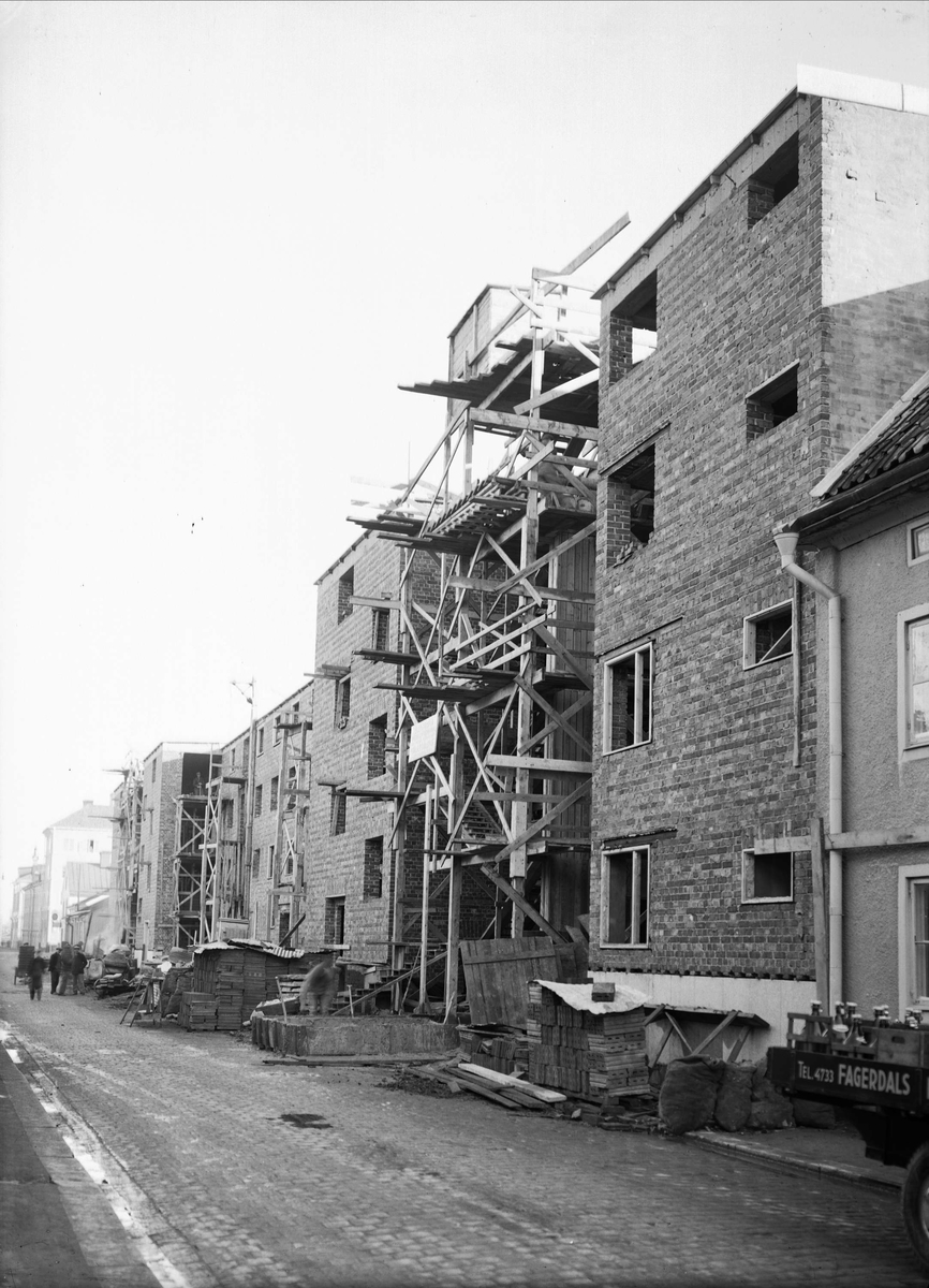 Titel: Klosettpalatset under byggnation, kvarteret Örtedalen, Skolgatan 45