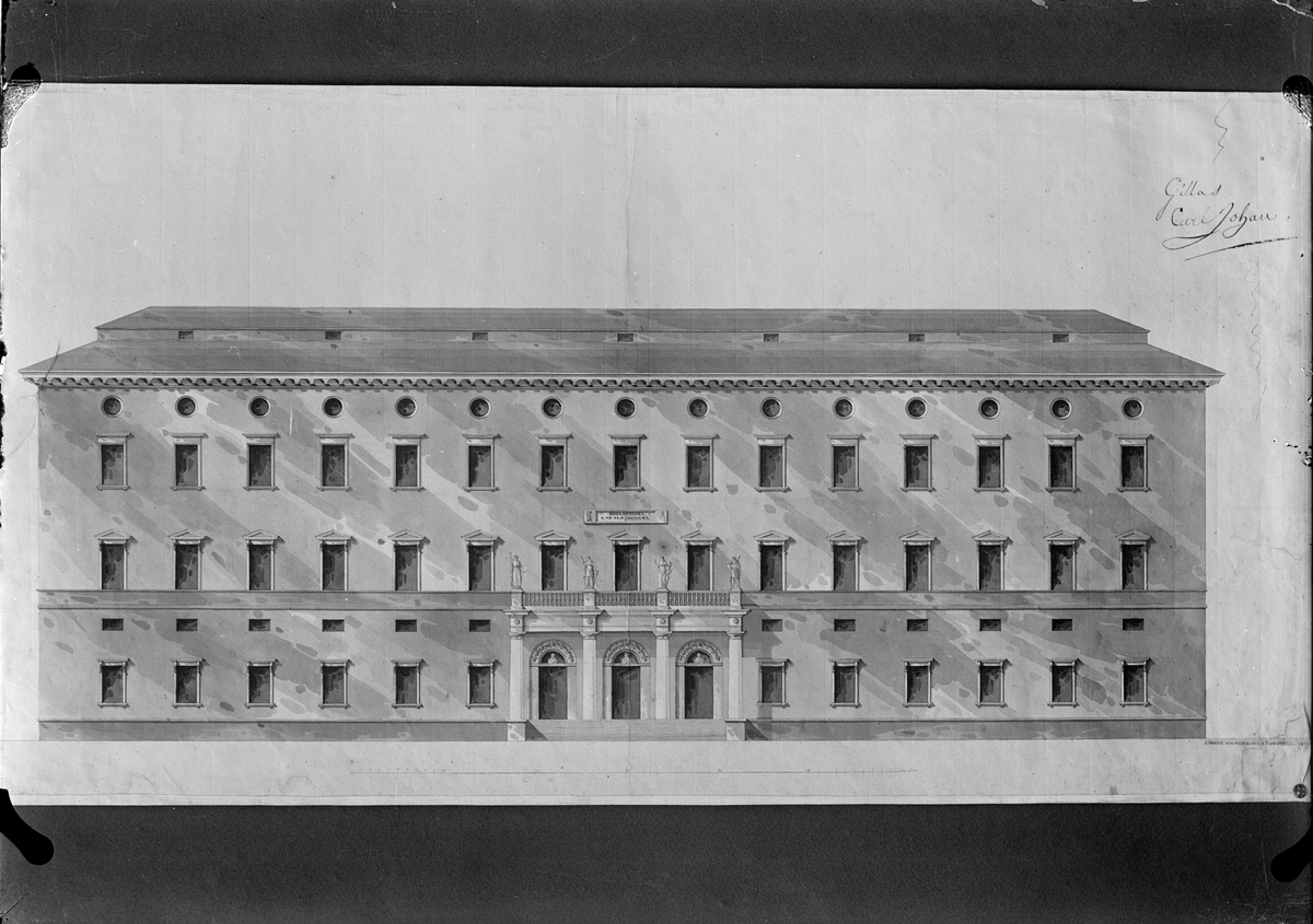Reproduktion - arkitekten Carl Fredrik Sundvalls ritning av Uppsala universitetsbibliotek, Carolina Rediviva, Uppsala