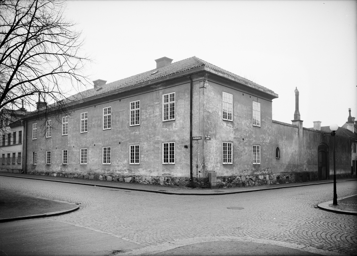 Byggnad uppförd 1932 - 1935 som Uppsala stads fattighus, korsningen S:t Olofsgatan - Övre Slottsgatan, kvarteret Pistolen, Uppsala 1934
