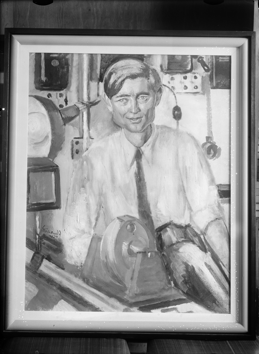 Oljemålning - konstnären Isaac Grünewalds porträtt av professor The Svedberg, i Fysikalisk-kemiska institutionens bibliotek