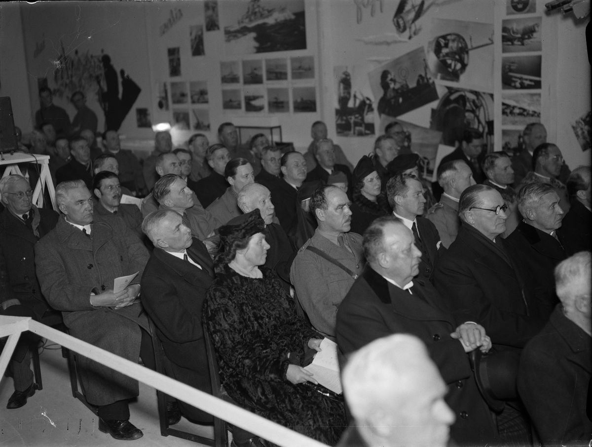 Publik på invigningen av Upplands Regementes försvarsutställning, Svartbäcksgatan 25
