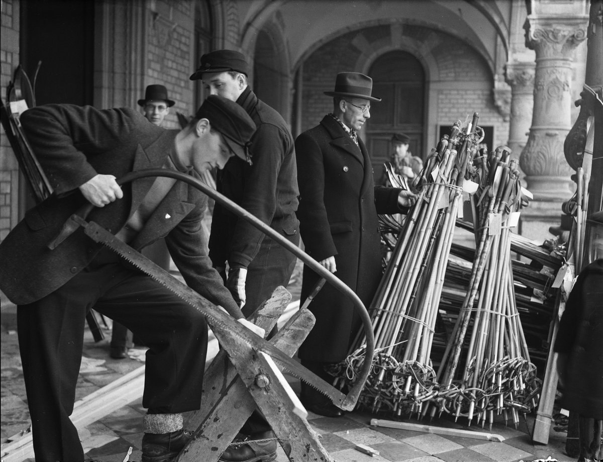 Sannolikt förberedelser inför fjällfärd, Norrlands studentnation, Västra Ågatan, Uppsala 1937