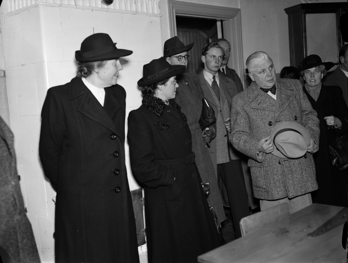 Lektor Sven Lide, ordförande i Uppsala stadsfullmäktige och i folkskolestyrelsen, var ciceron när stadsfullmäktigeledamöter studerade lokalerna i Prinsens skola