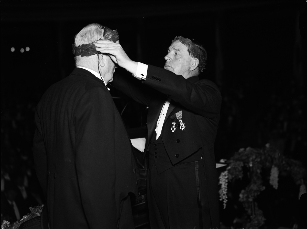 Promotor professor Gregor Paulsson "sätter jubellagern" på professor L A Jägerskiöld