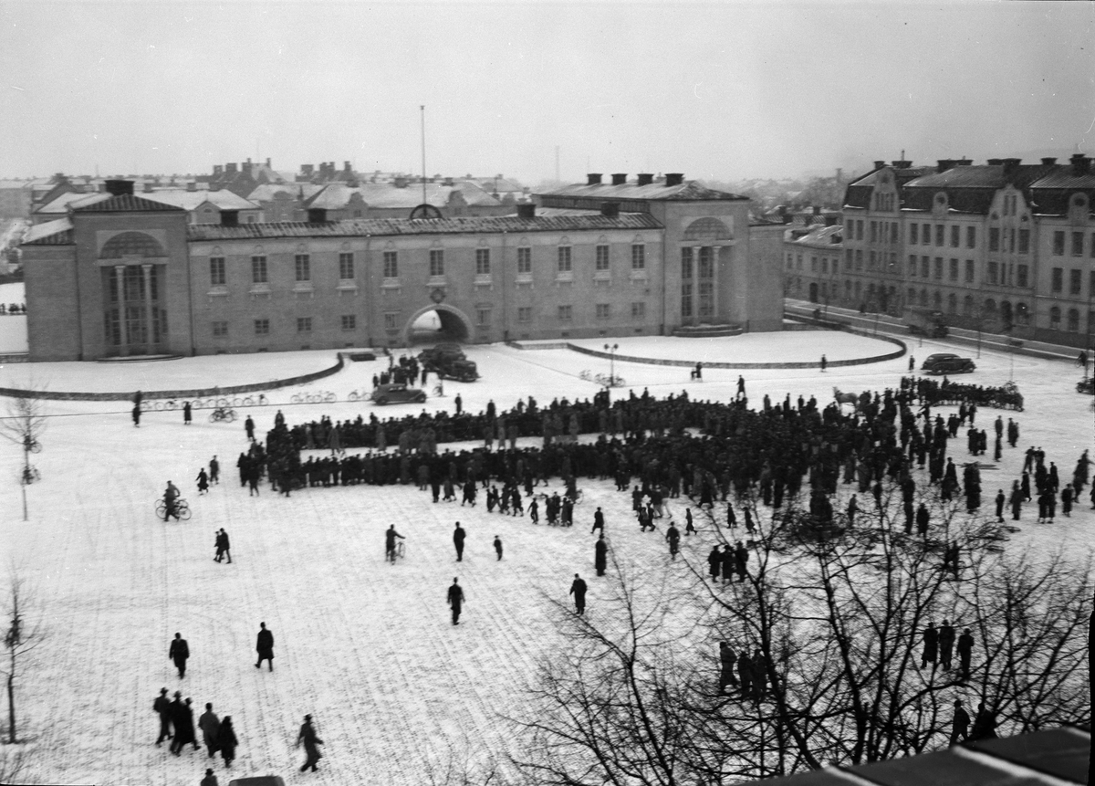 Folksamling på Vaksala torg, Uppsala mars 1939