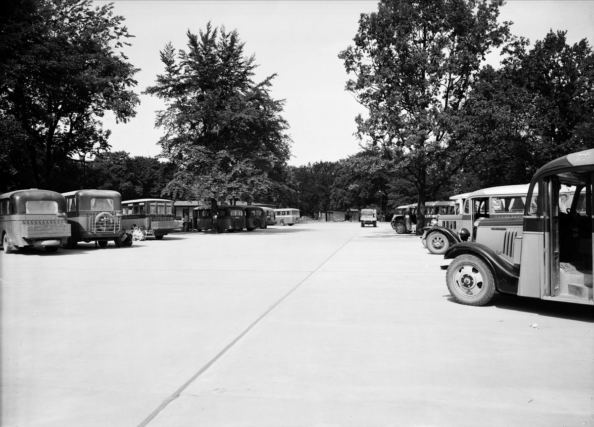 Bussparkering, sannolikt i närheten av Uppsala busstation, Järnvägsområdet, Uppsala 1937