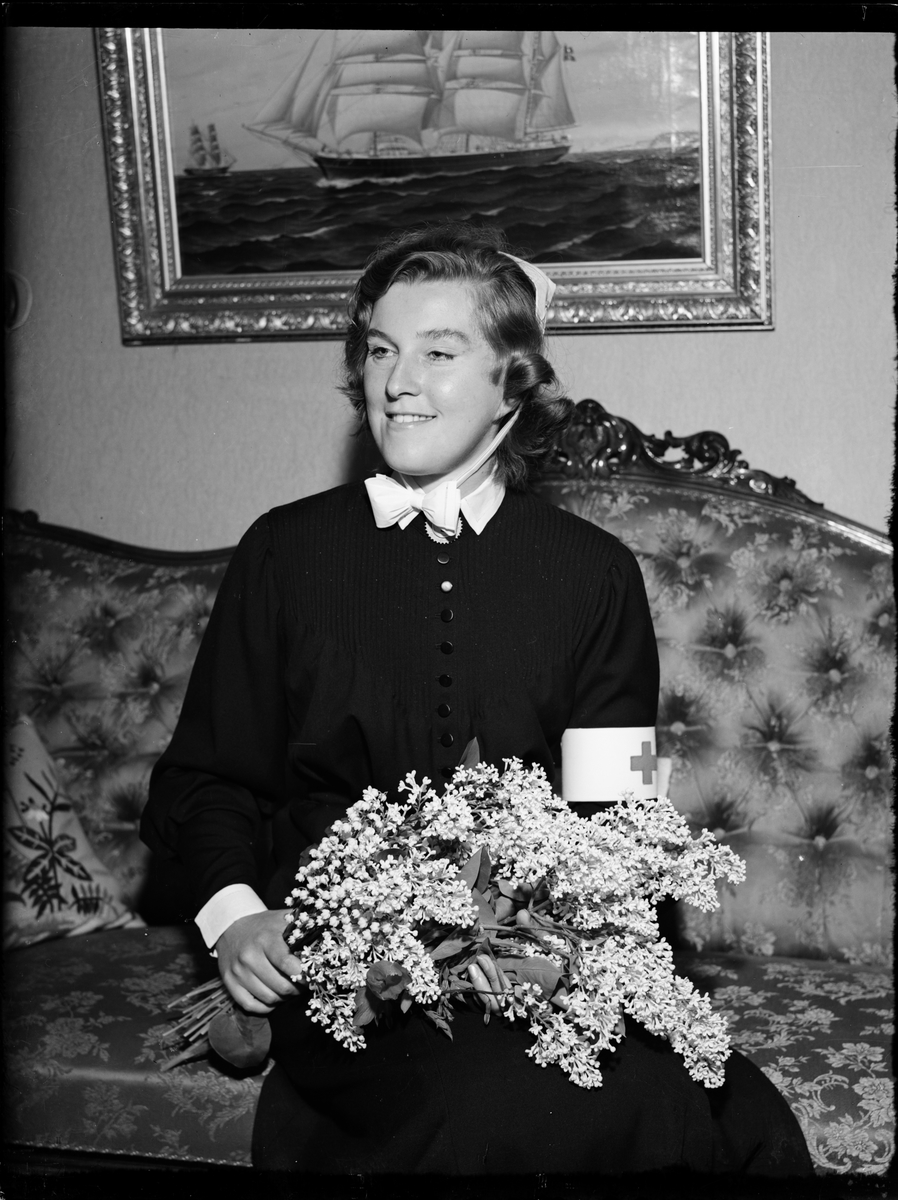 Kvinna i sjukvårdsuniform, Östhammar, Uppland