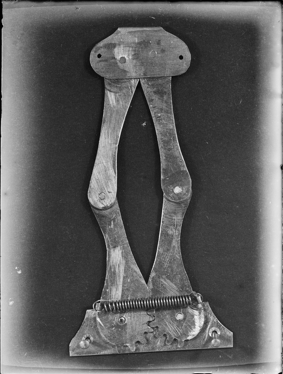 Metalldel med fjäder och kuggar, troligen till kamera Östhammar, Uppland