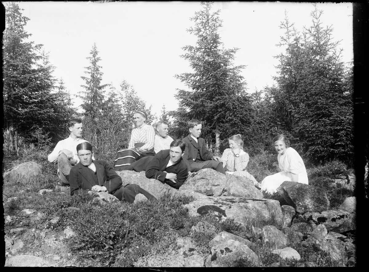 Kvinnor och män sitter ute i naturen, Östhammar, Uppland
