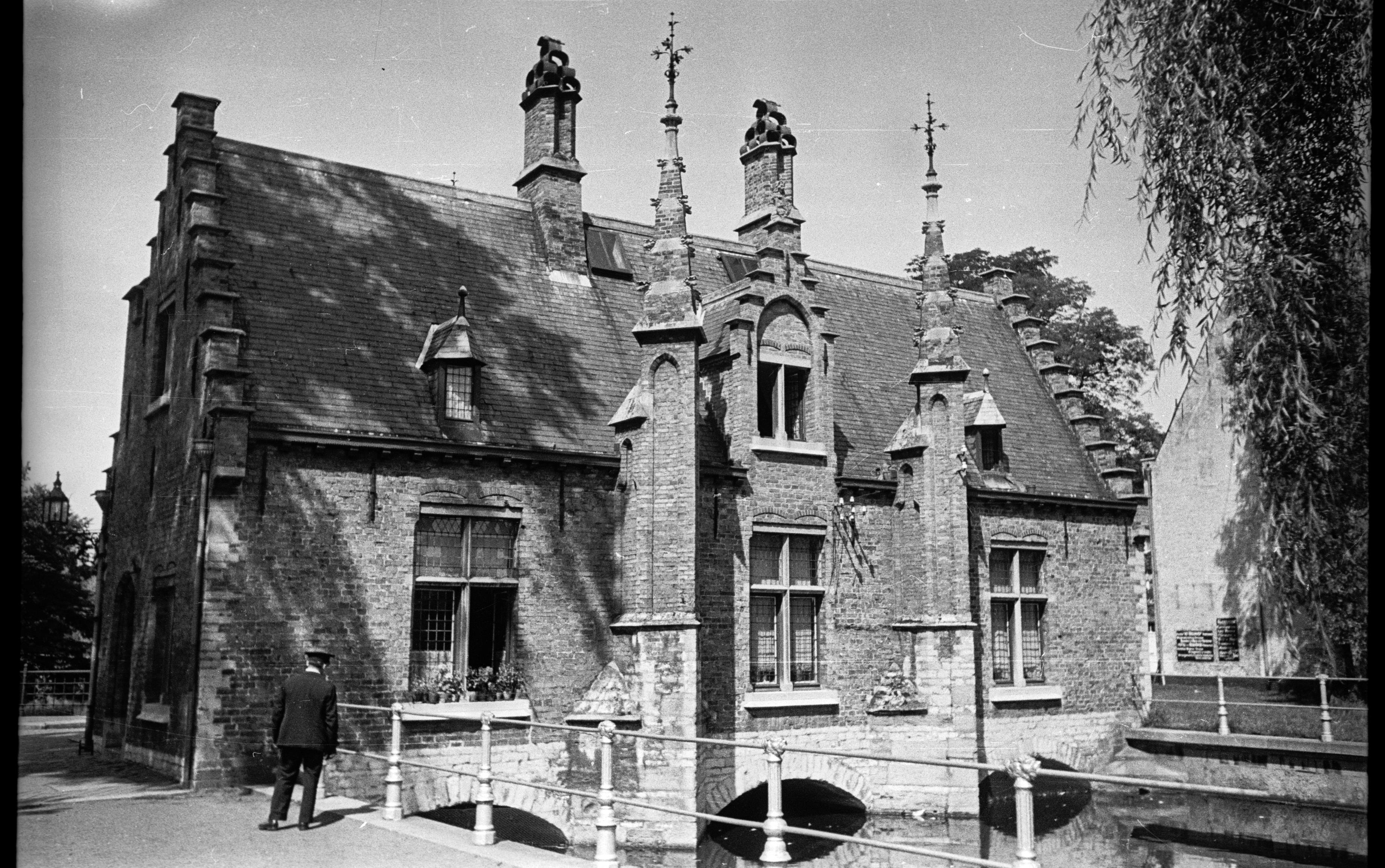 "Sashuis". Slusshus, byggt 1519 ovanpå slussen vid den kanaliserade sjön Minnewater i Brygge. Byggnaden renoverades i slutet av 1800-talet.