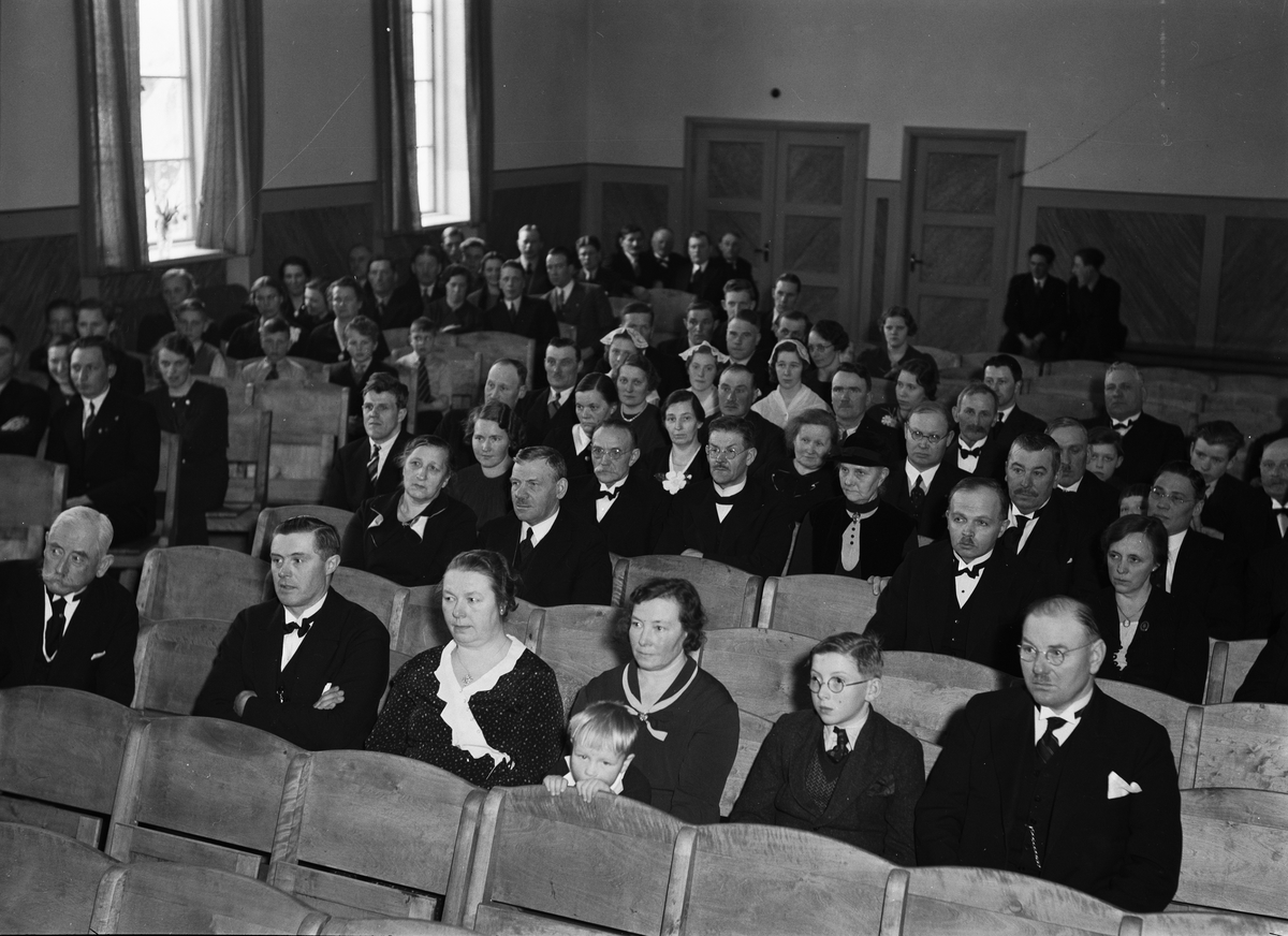 Åhörare vid invigningen av Bälinge bygdegård - längst till vänster professor Carl Axel Reuterskiöld och längst till höger riksdagsman Carl Gustaf Närlinge