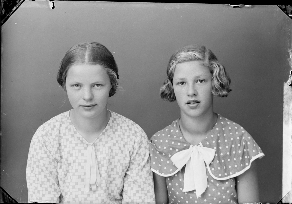 Ateljéporträtt - systrarna Wikman från Harg, Uppland