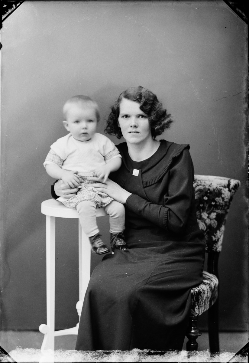 Titel: Ester Jansson med sonen Björn från Gisselbol, Uppland 1936