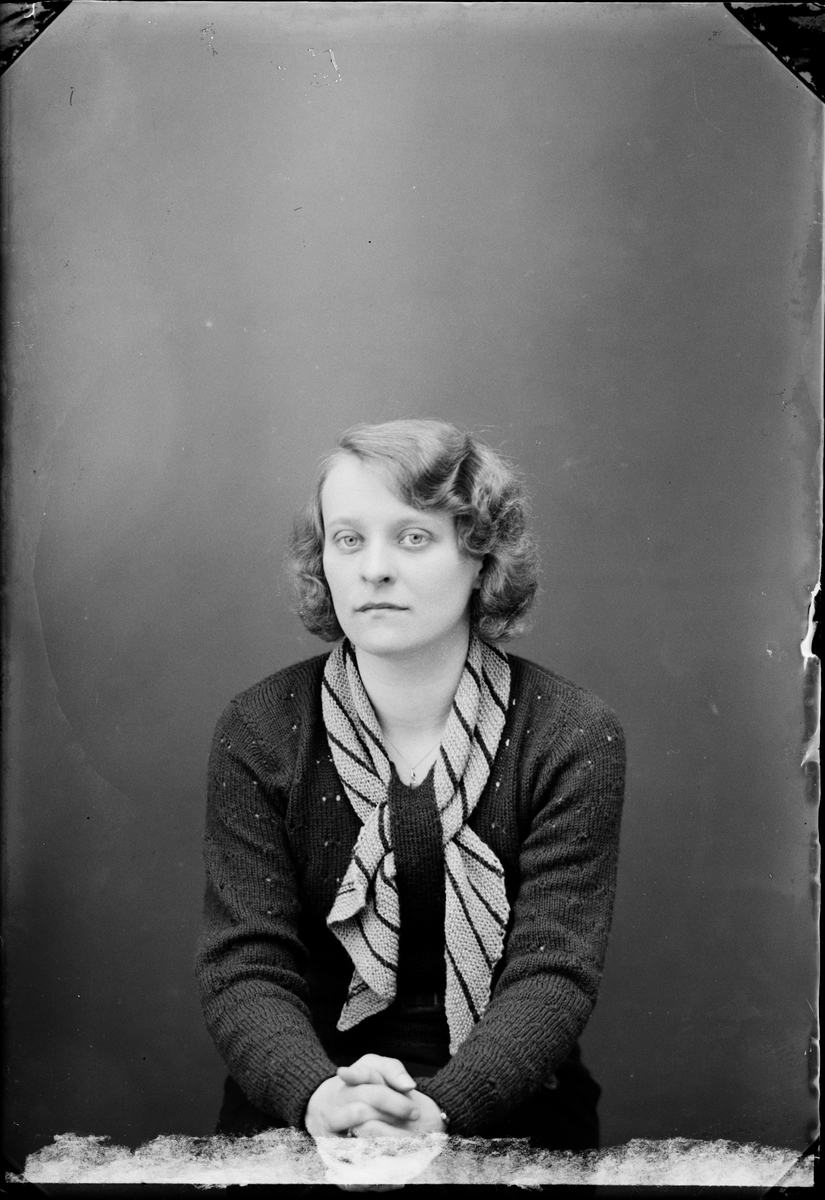Ateljéporträtt - Margit Jansson från Gimo, Skäfthammar socken, Uppland