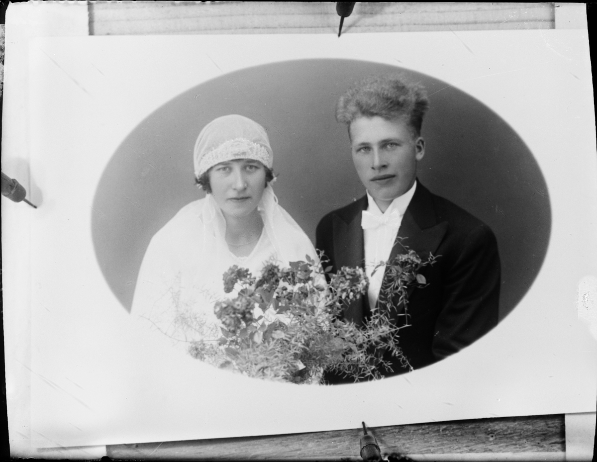 Reprofotografi - brudparet Eriksson från Västra Tvärnö, Harg socken, Uppland
