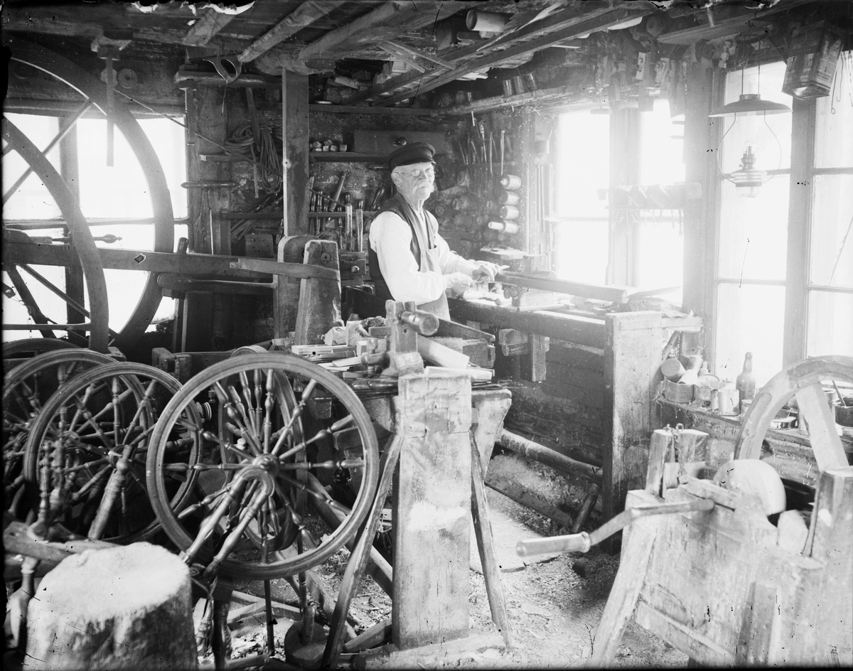 Svarvare Holm arbetar i sin verkstad, Östhammar, Uppland