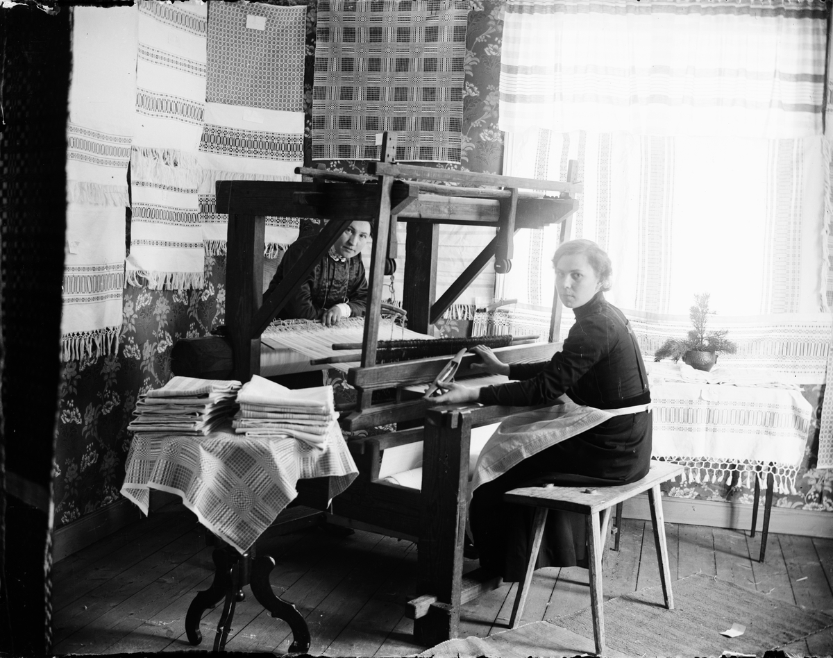 Kvinnor vid en vävstol, Östhammar, Uppland