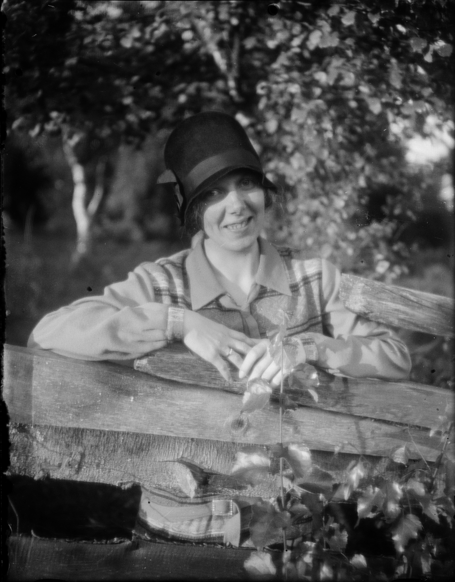 Kvinna i hatt vid staket, Östhammar, Uppland