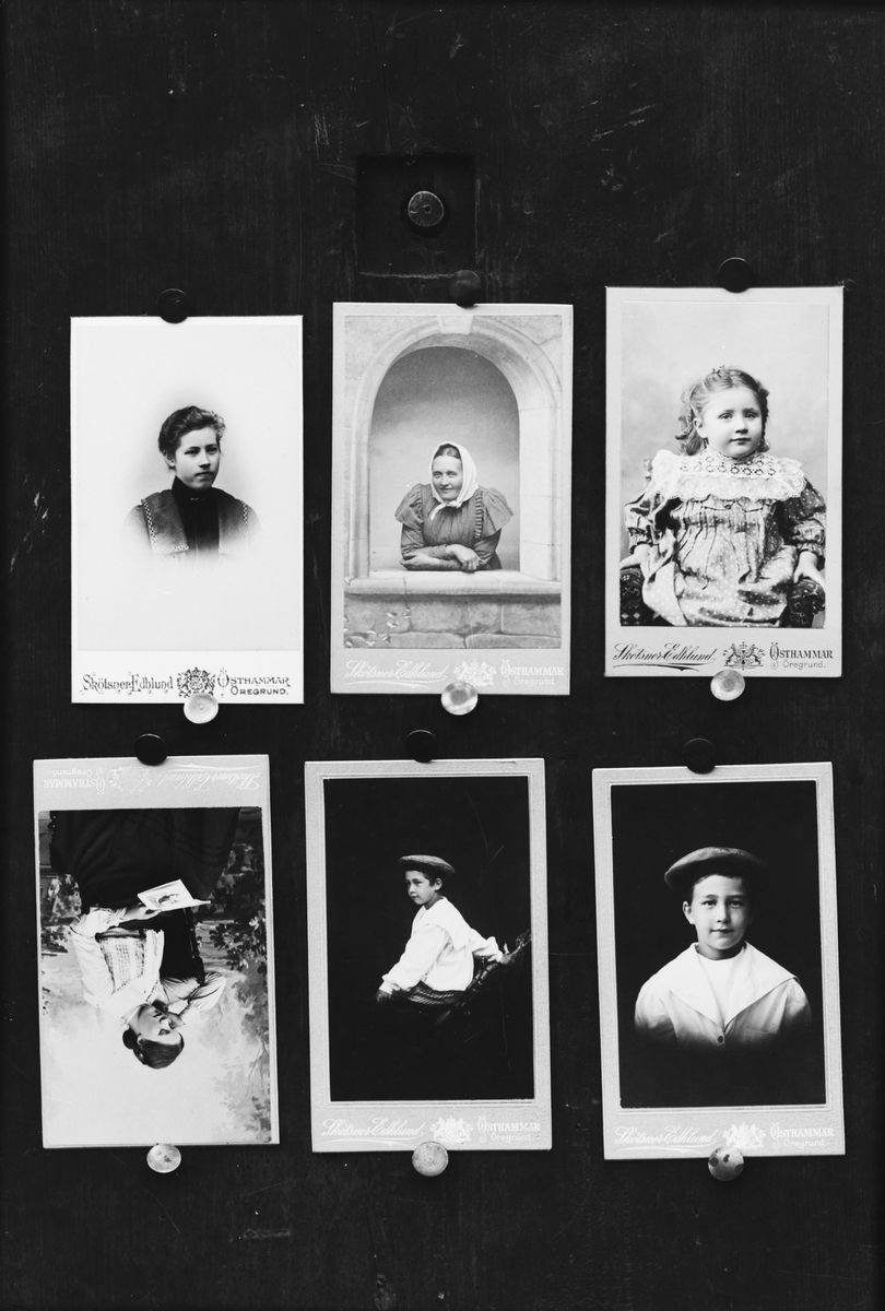 Reprofotografi - kabinettsfotografier uppsatta med häftstift, Östhammar, Uppland