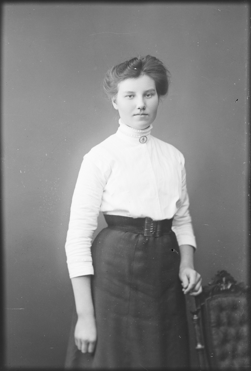 Ateljéporträtt - kvinna från Tuskö, Börstil socken, Uppland