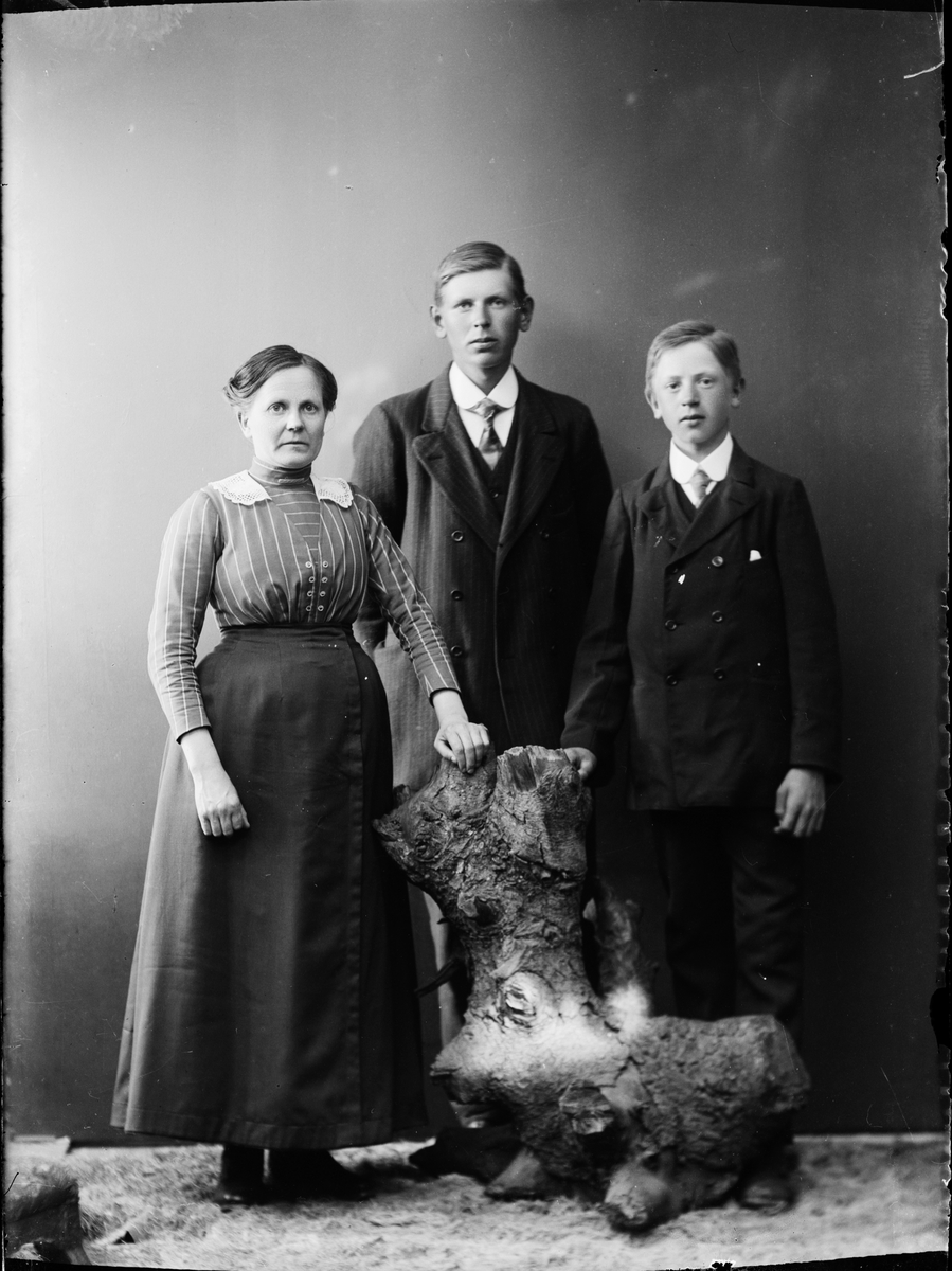 Ateljéporträtt - kvinna, ung man och pojke, Östhammar, Uppland