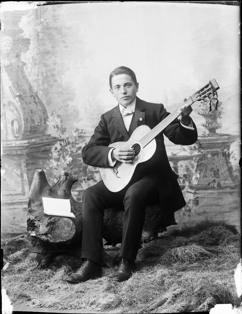Ateljéporträtt - ung man med gitarr, Östhammar, Uppland