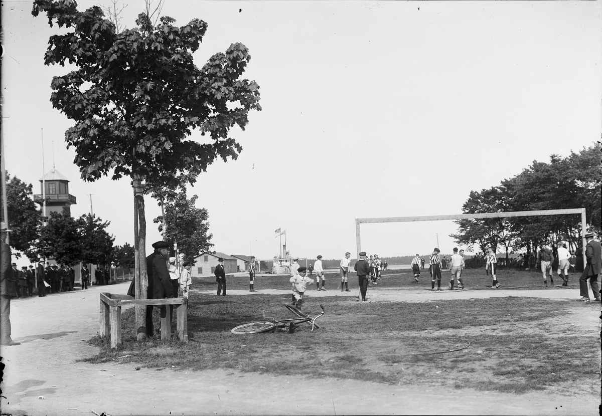 Fotbollsmatch på Sjötorget i Östhammar, Uppland