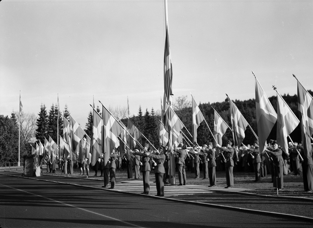 Titel: Nationaldagsfirande på Studenternas Idrottsplats, Uppsala 1940