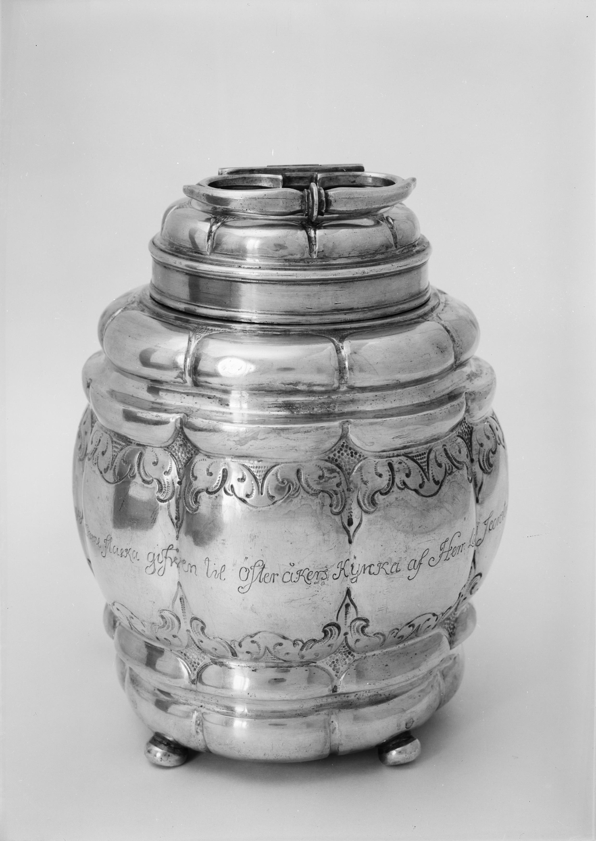 Vinflaska av förgyllt silver, 1700-tal.