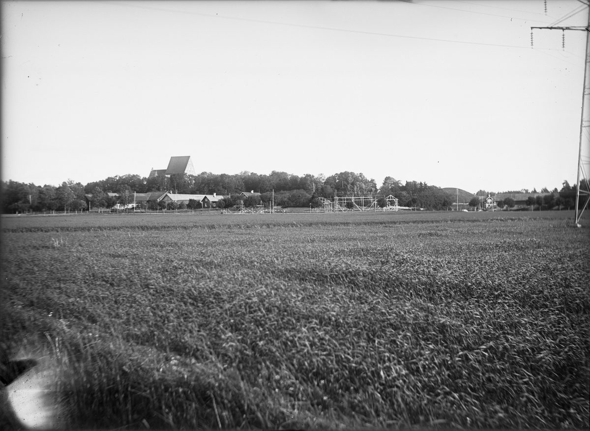 Titel: Modeller av friluftsmuseet Disagårdens byggnader utplacerade på plats i Gamla Uppsala år 1928