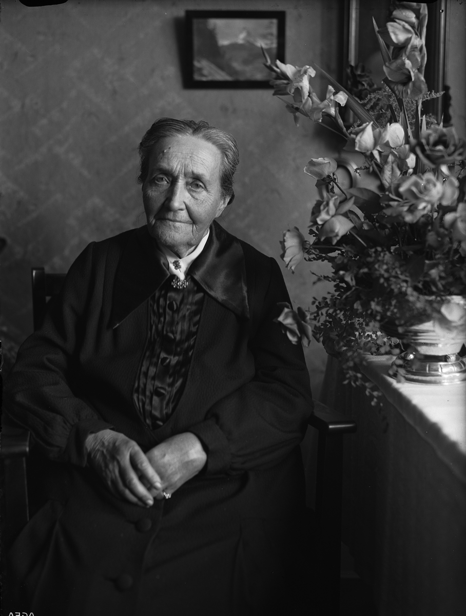 Titel: Födelsedagsporträtt - åldrig kvinna, sannolikt Uppsala 1944