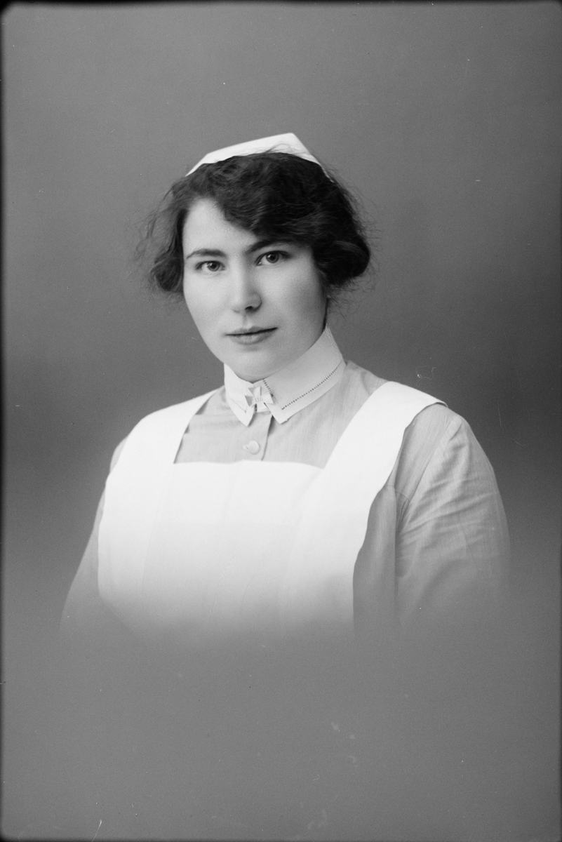 Fröken Claesson i sjukvårdsuniform, Östhammar, Uppland 1925