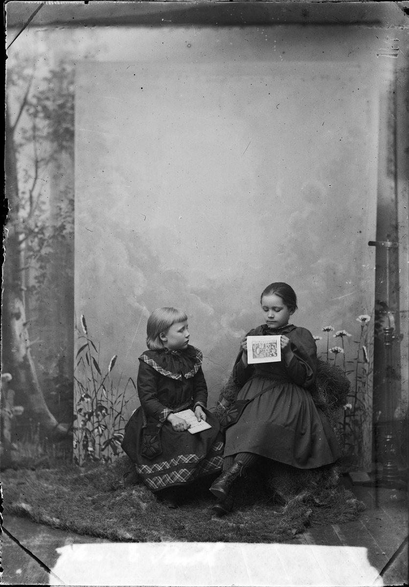 Ateljéporträtt - Ruth Skötsner och flicka läser, Östhammar, Uppland
