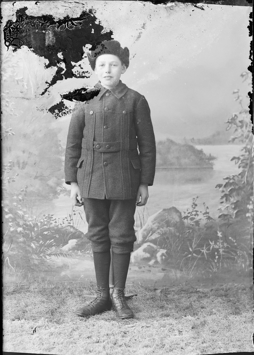 Ateljéporträtt - pojke klädd i ytterkläder, Östhammar, Uppland