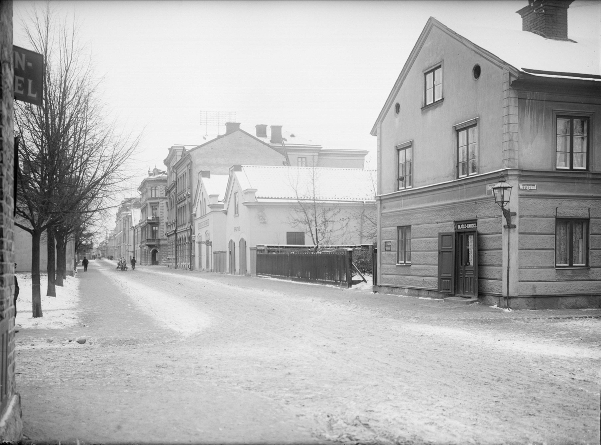 Dragarbrunnsgatan vid korsningen mot Vretgränd, Dragarbrunn, Uppsala 1901 - 1902