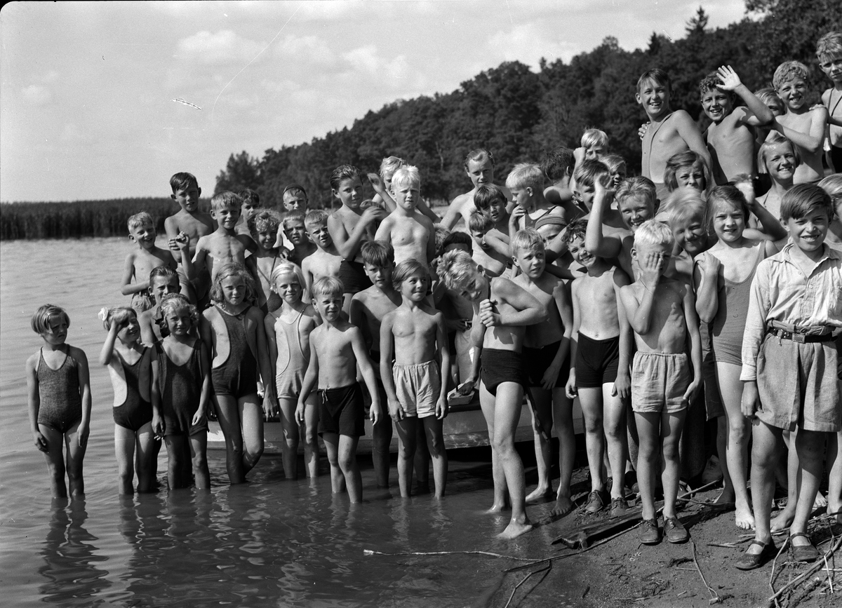 Sannolikt barn vid Mälarens strand på SMK Uppsalas sommarutflykt till Fredrikslunds gård